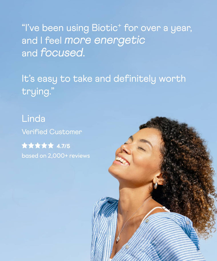 On top of that, our formulas are informed by over 700 scientific studies. Vitals⁺ contains only the most bioavailable compounds, ensuring that your body can actually absorb the nutrients that it needs. Similarly, the seven strains in Biotic⁺ have been fermented to be acid-resistant, so they can survive the harshly acidic stomach environment.