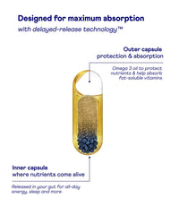 Recharge to perform at your best with 20 essential nutrients—from omega-3s, blueberry extract, iron, zinc, and the full B complex.